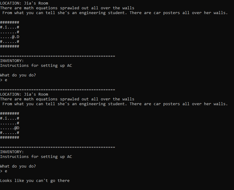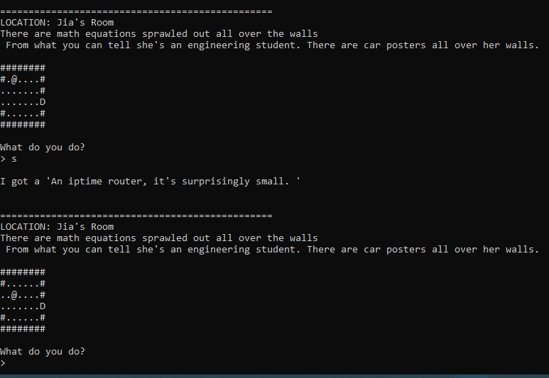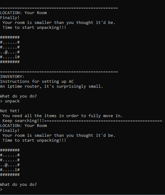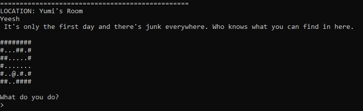 To get more experience with C++ I tried my hand at making a tiny ASCII dungeon to get familar with player input that are not text commands, but using traditional controls to move around a world. A link to the game can be found below.